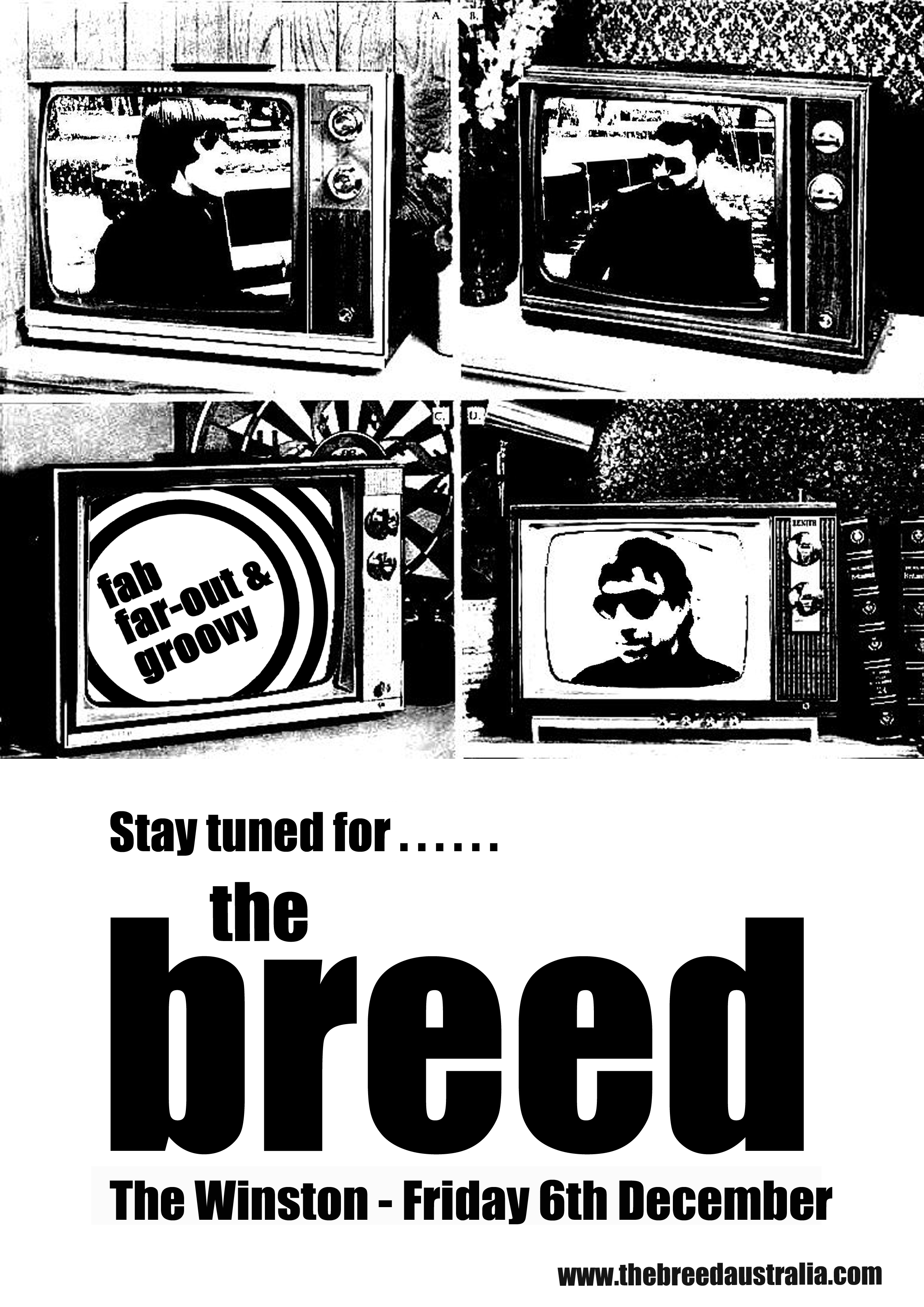The Breed return to The Winston October 7, 2013October 11, 2013 by thebreedaustralia, posted in News, Promotional Material Stay tuned for another fab. far-out and groovy time, when the Breed return to bring their unique blend of 60s punk, mersey-beat, mod, and power-pop to the Winston on Friday 6th December 2013. The band starts playing at 10.00 pm. Share this: Click to share on X (Opens in new window) X Click to share on Facebook (Opens in new window) Facebook Like Loading... Related