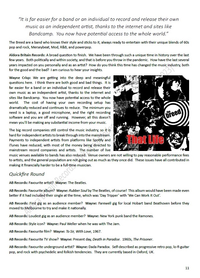 The Breed feature in the latest issue of Aldora Britain Records e-Zine